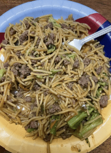 - In a large bowl, mix together the cooked spaghetti, ground beef mixture, and cream cheese until well combined.