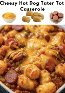 If you’re looking for a kid-friendly dinner recipe that’s easy, affordable, and incredibly delicious, this Cheesy Hot Dog Tater Tot Casserole is the answer! With layers of sliced hot dogs, creamy sauce, crispy golden tater tots, and gooey melted cheese, this dish is the ultimate comfort food casserole.