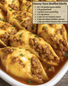 Looking for a delicious and fun twist on a classic dish? These Cheesy Taco Stuffed Pasta Shells are sure to be a hit with your family!