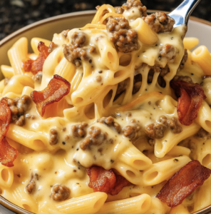 Loaded Bacon Cheeseburger Alfredo Pasta
