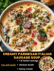 Creamy Parmesan Italian Sausage Soup 🍲🧄🧀