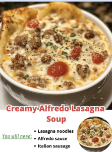 This Creamy Alfredo Lasagna Soup is the kind of meal that turns any ordinary night into something special. It’s cozy, indulgent, and surprisingly easy to make — plus, it reheats like a dream. Whether you’re feeding family, impressing guests, or just treating yourself, this recipe delivers comfort in every spoonful. ❤️