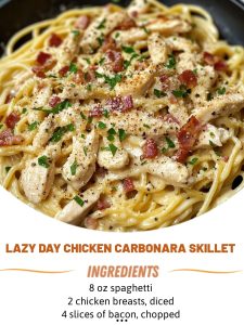 Introducing a quick and delicious recipe for all you busy ladies out there: Lazy Day Chicken Carbonara Skillet! Perfect for those hectic days when you need a satisfying meal in a flash.