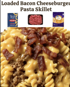 Craving a juicy bacon cheeseburger but want something cozy, creamy, and family-friendly? Meet your new favorite comfort food: Loaded Bacon Cheeseburger Pasta Skillet. It’s everything you love about a classic burger—savory beef, smoky bacon, melty cheese, and tangy toppings—tossed with tender pasta and cooked in one pan. Minimal dishes, maximum flavor, and ready in about 30 minutes.