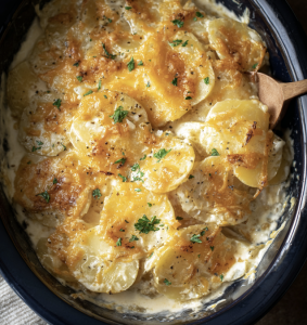 All the love of homemade scalloped potatoes — no oven needed, no fuss, and no burnt edges. Just slow-cooked perfection that practically stirs itself. 💛